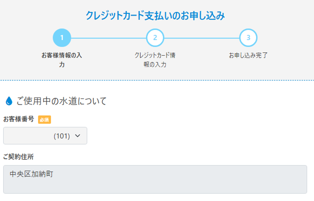※給水申込後のお客様番号(12桁)がわかると、上記のクレジットカード支払いの登録手続きが可能です。