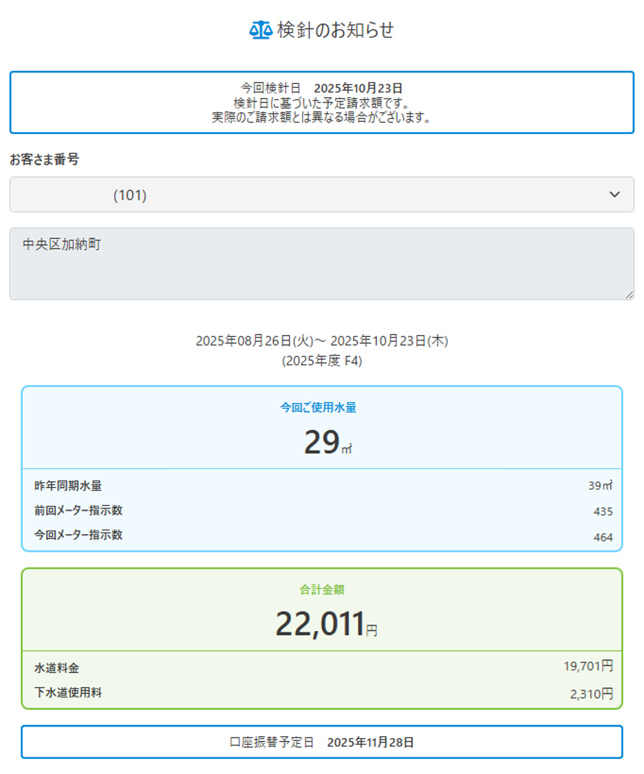 お客様番号は、「ご使用水量のおしらせ」や「納入通知書」でご確認いただけます。