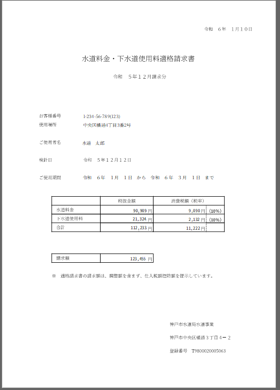 水道契約の契約者名義を変更いただきますと、適格請求書に反映されます。
