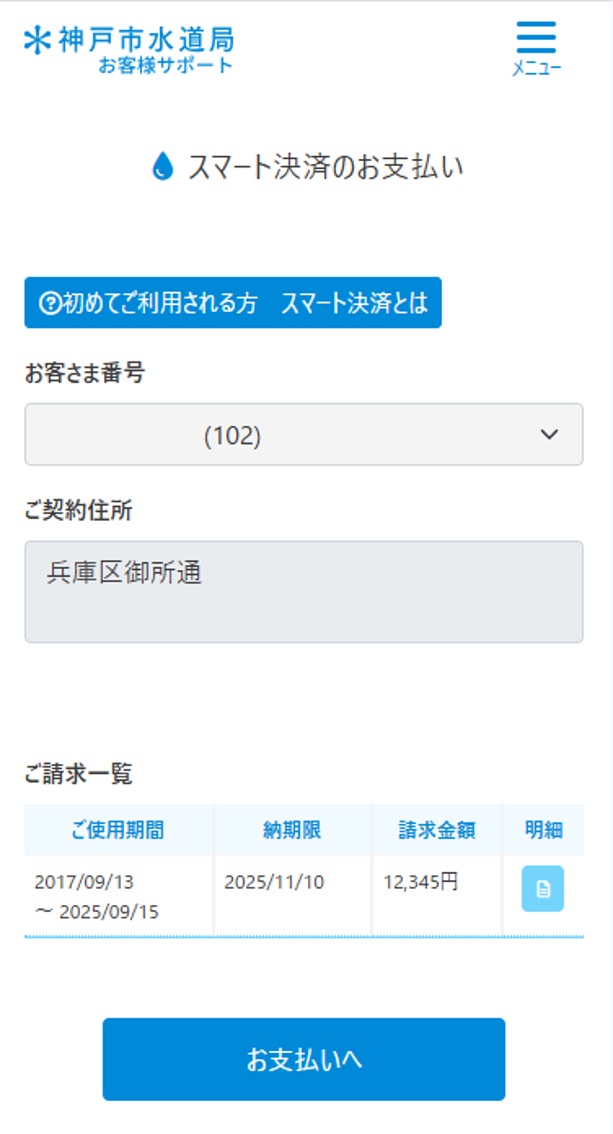 納入通知は、お客様サポートのメニュー「スマート決済支払い」へ電子配信されます。
