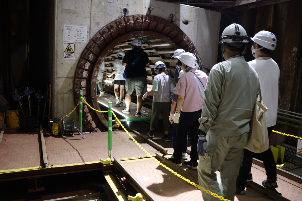 整備を進めている送水連絡管のシールド内を歩いて見学しました。